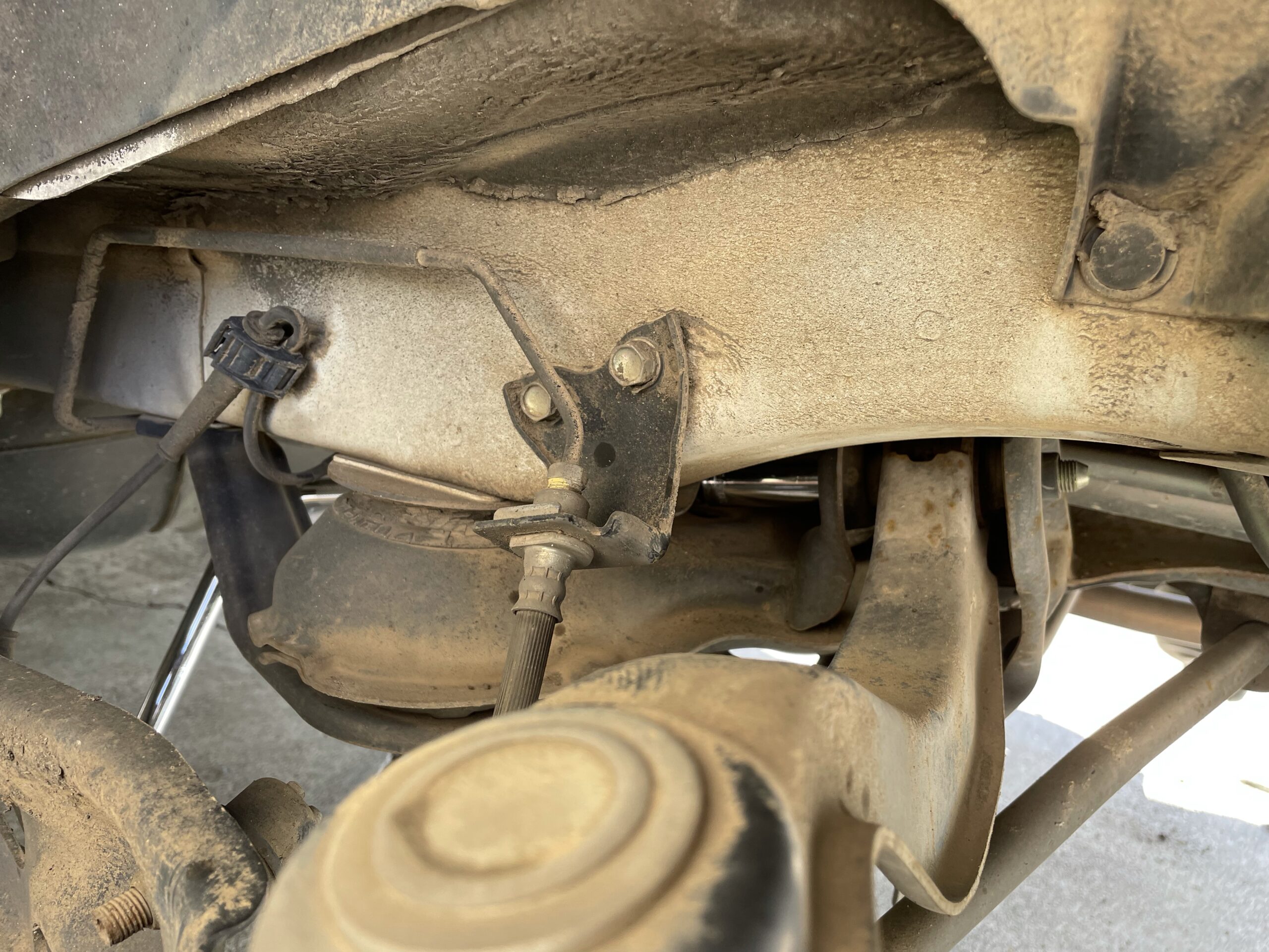 手前のボールジョイント側を外し終えたら、最後に奥側のボルトを外します。