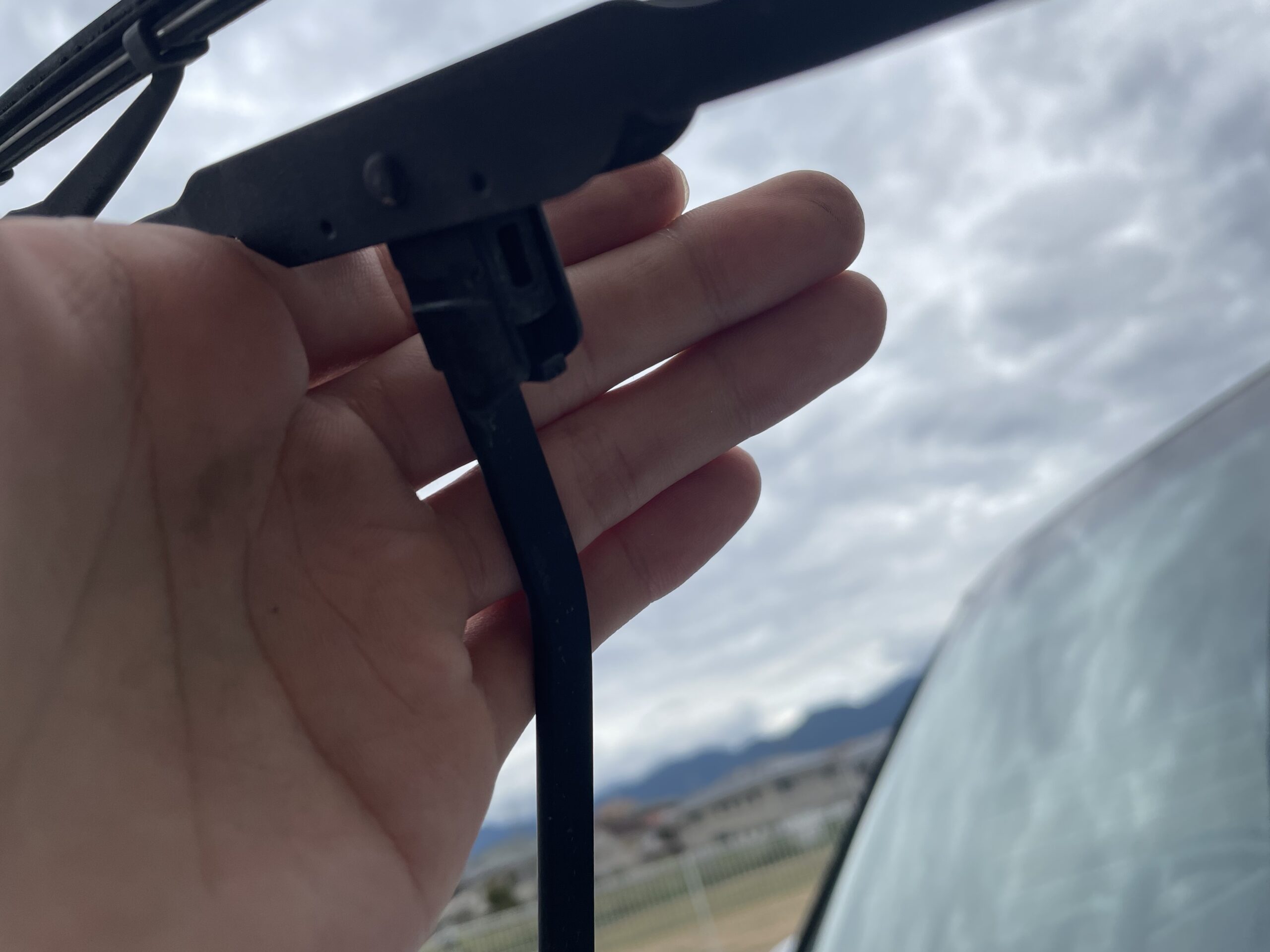 先日、フロントワイプーを稼働させた際に変な音が出ていましたので、確認してみたところ、フロントのワイパーゴム(ブレード)が完全に切れておりました。