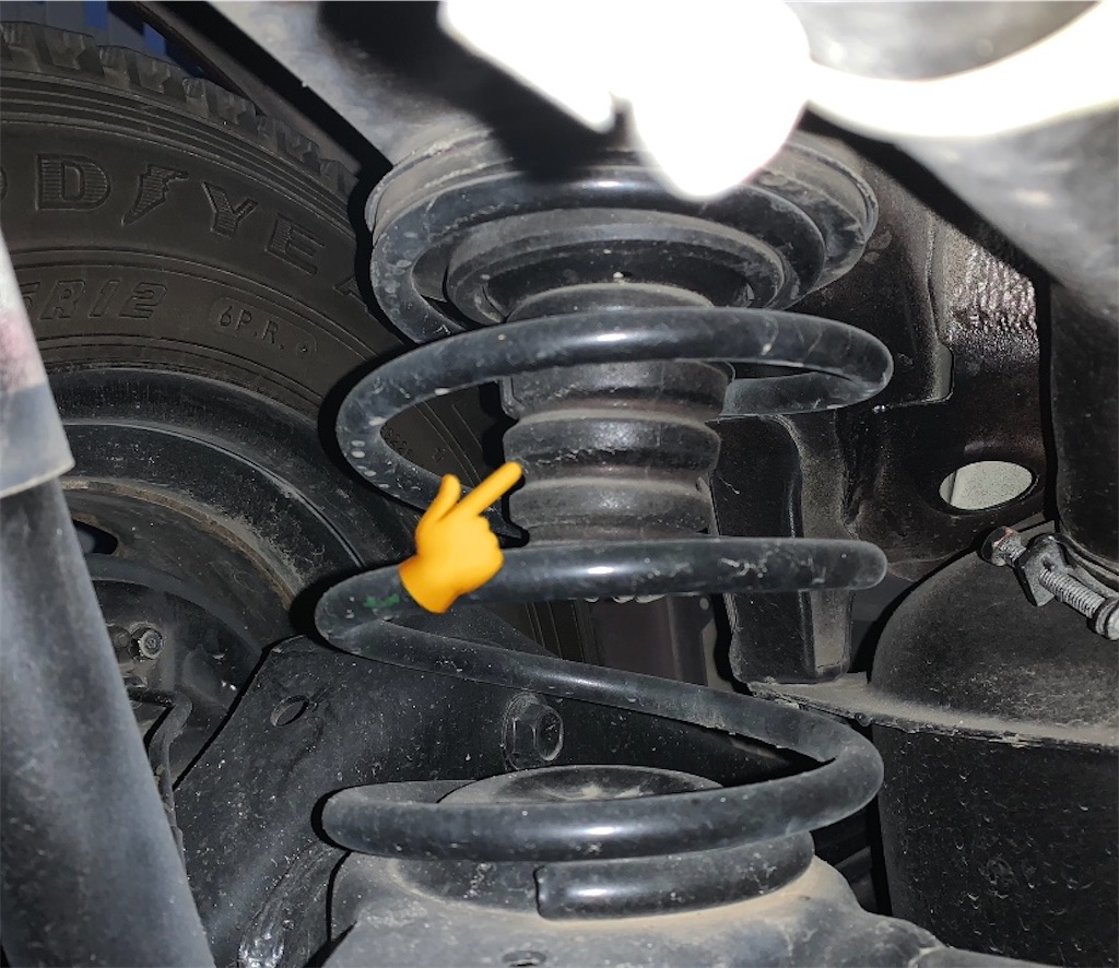 写真を見てもらったら分かるように、純正の状態からバネが短く、バンプラバーとアクスルの距離が短いのが分かると思います。