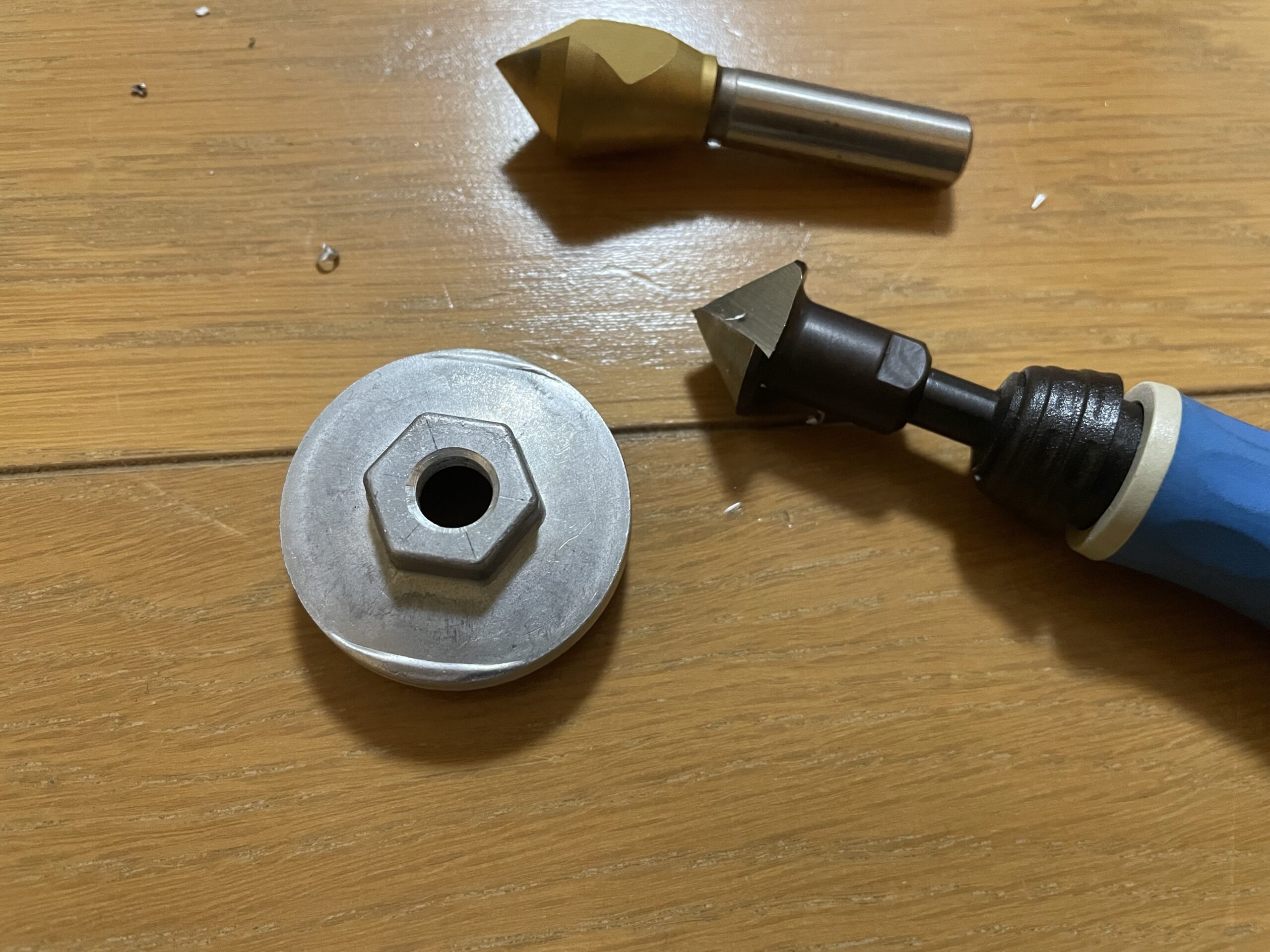 面取りカッターなんて持ってないし、滅多に新規のネジ穴を開ける機会はないからわざわざ購入するのは嫌だな…。