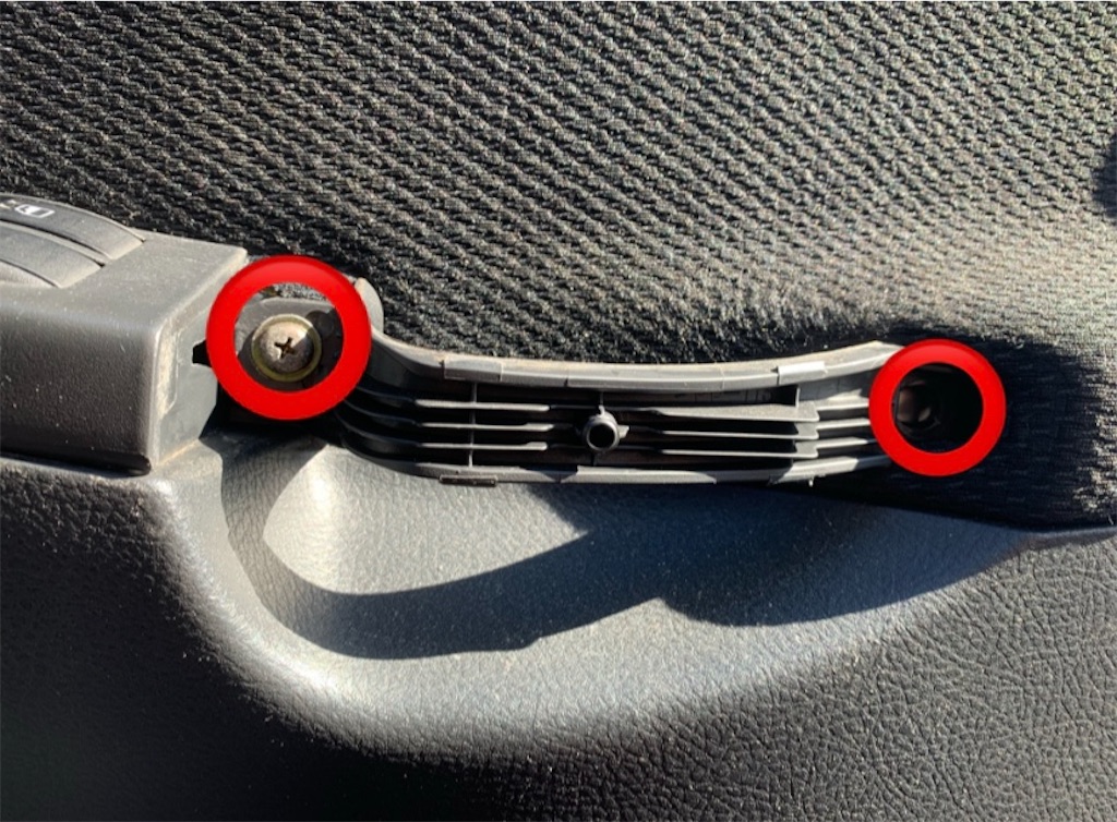 取り手のカバーは隙間に内張剥がし等を入れると簡単に外せます。僕は無理やり爪で取ってやりました。