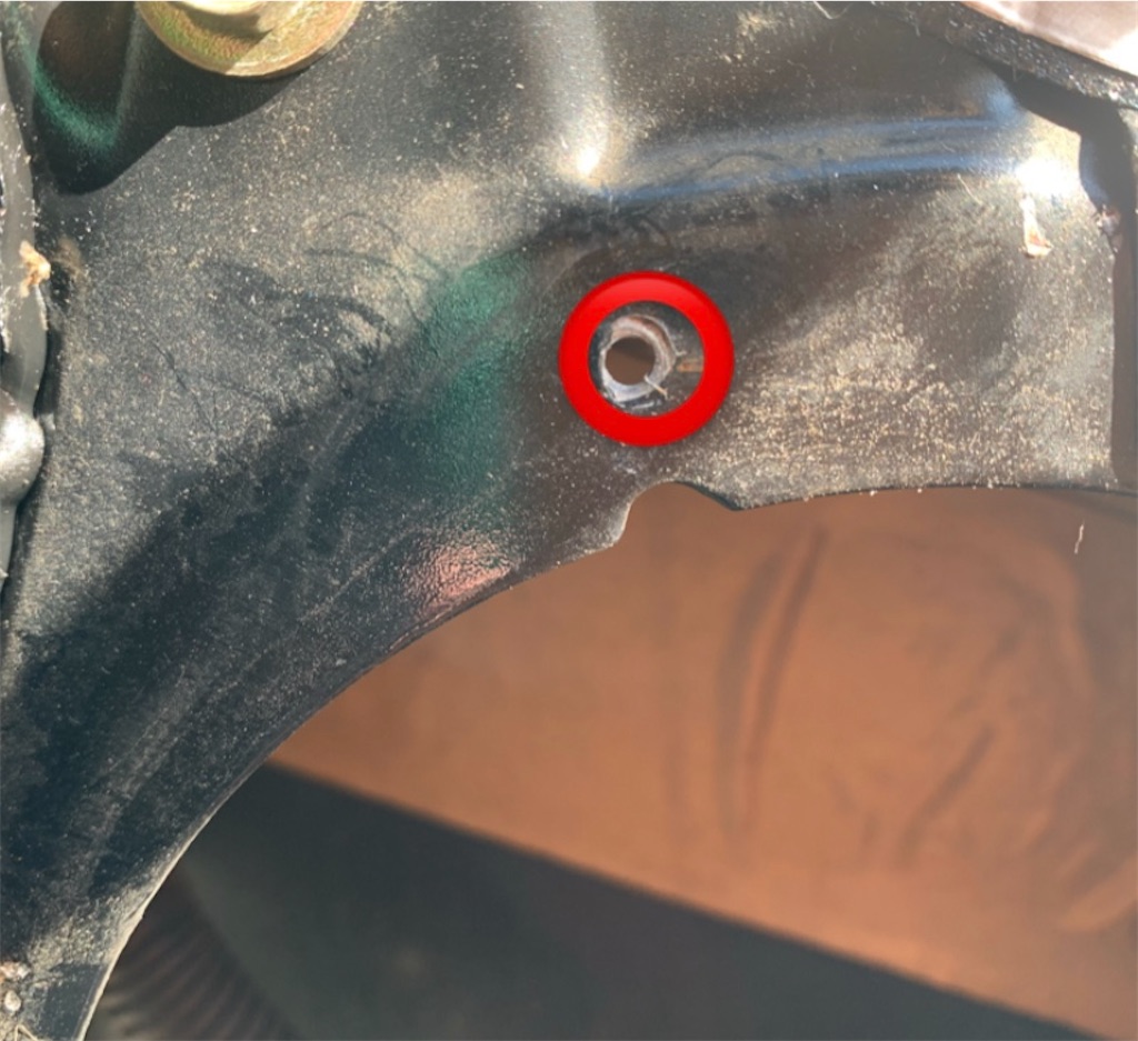 純正スピーカーを固定していた3本の穴を拡張したら、その穴を使ってスピーカーバッフルを固定します。