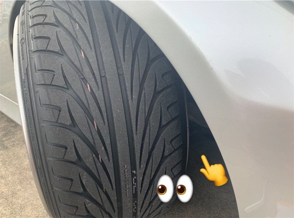 確認方法ですが、ハンドルをいっぱいに切って、タイヤの隙間から中を覗くと確認できます。