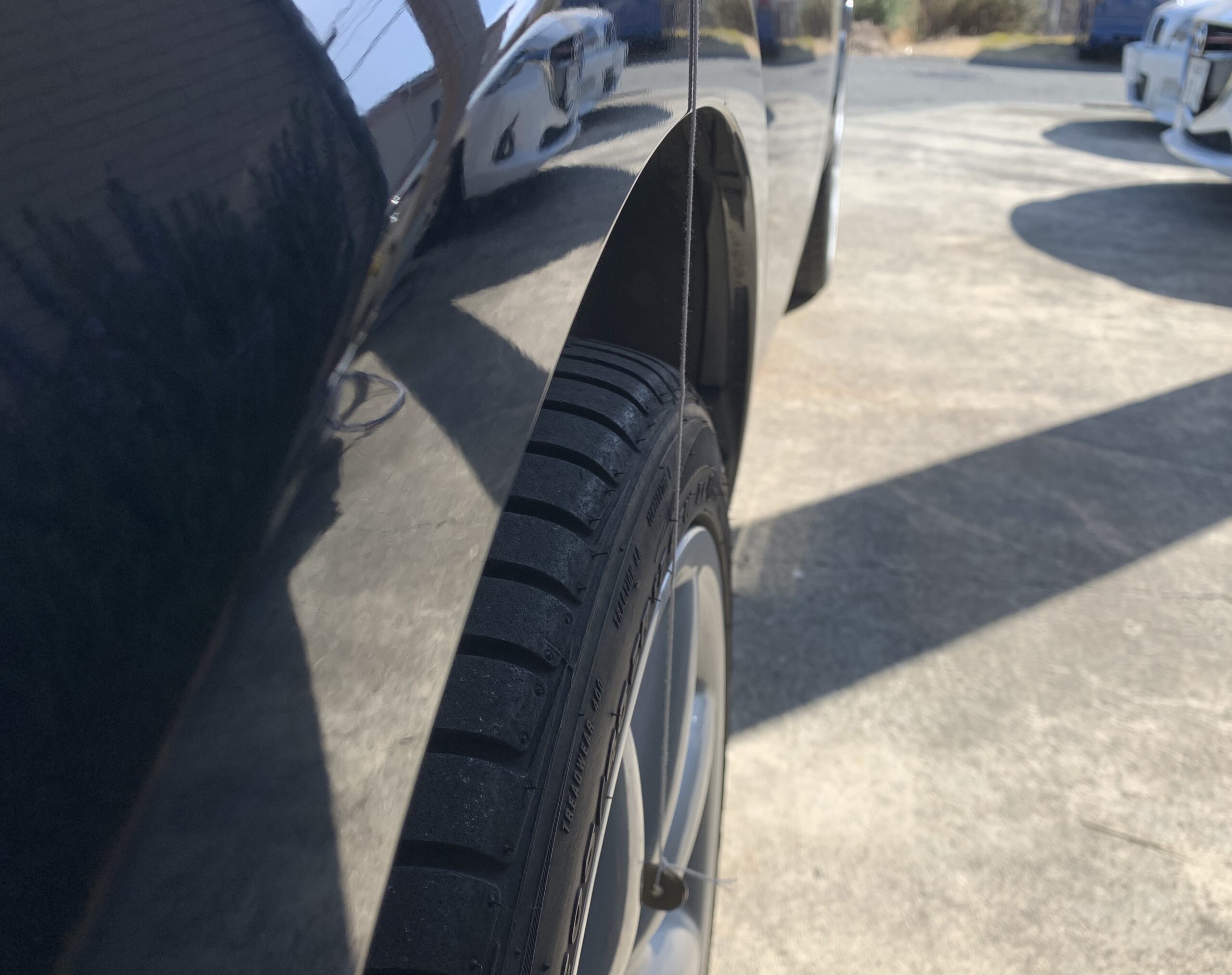 アプリを使って、ホイールのオフセット計算をし、フェンダーとリムの距離もバッチリ測ったからOK〜!!