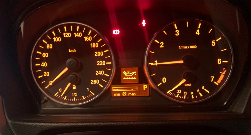 この年代ぐらいのBMWからエンジンオイル量は、すべてコンピューターで管理されていて、ボンネット中から目視確認は出来ません。