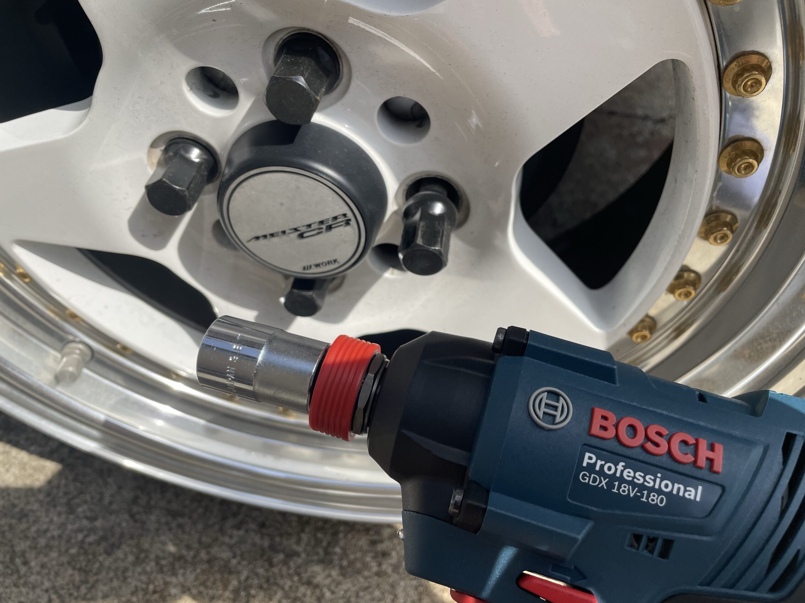 ホイールナットを緩めるならGDX18V-180ではなく、GDX18V-200もしくは300をお勧めします。180でも、ホイールナットが緩みましたが、打撃を何回か加えてようやく回り始める程度です。
