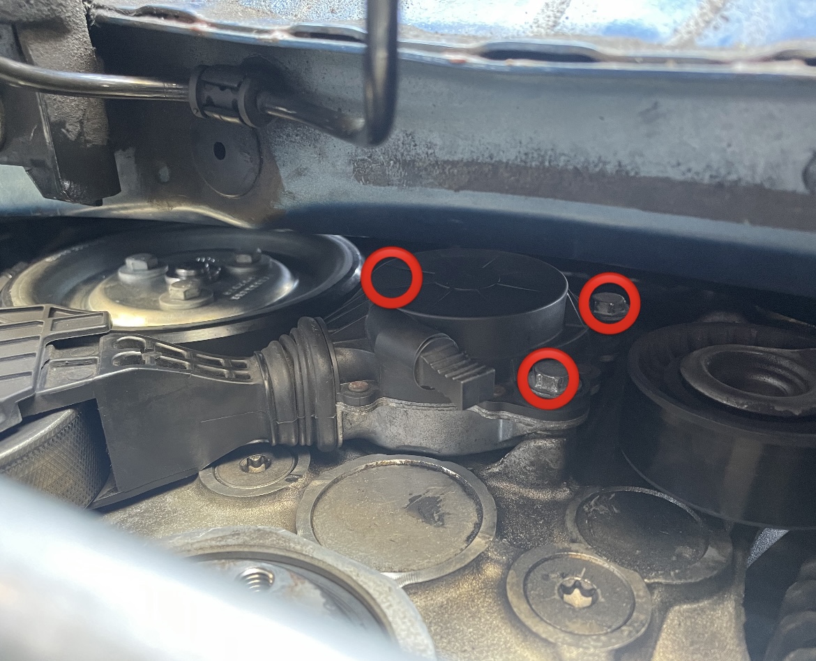 R56ミニクーパーのウォータポンプ周りの交換作業に伴い、フリクションローラーの取り外し作業を行いました。