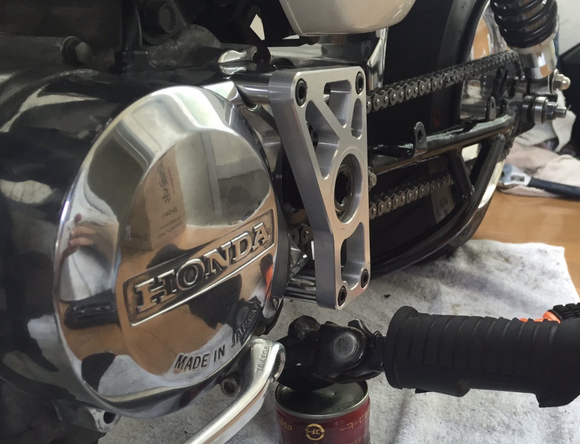 ただし、GMモトさんから出ているアタッチメントを使用すれば、ジャズシャフト用のカウンターボードの取り付けが可能になります。ダックスはモンキーシャフトですが、アウターボードのベアリングは小さい方が見た目が良かったため、アタッチメントを使用し、水野鈑金さんのアウターボードを取り付けしています。
