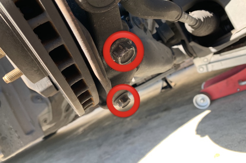 プラスで、ナックルは素材がアルミなので、無理にボルトを入れようとすると、すぐにネジ山が破損します。