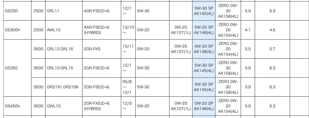 ただし、GS300H(ハイブリッド)と後期のガソリン3.5Lモデルはオイル量が異なりますので注意です。