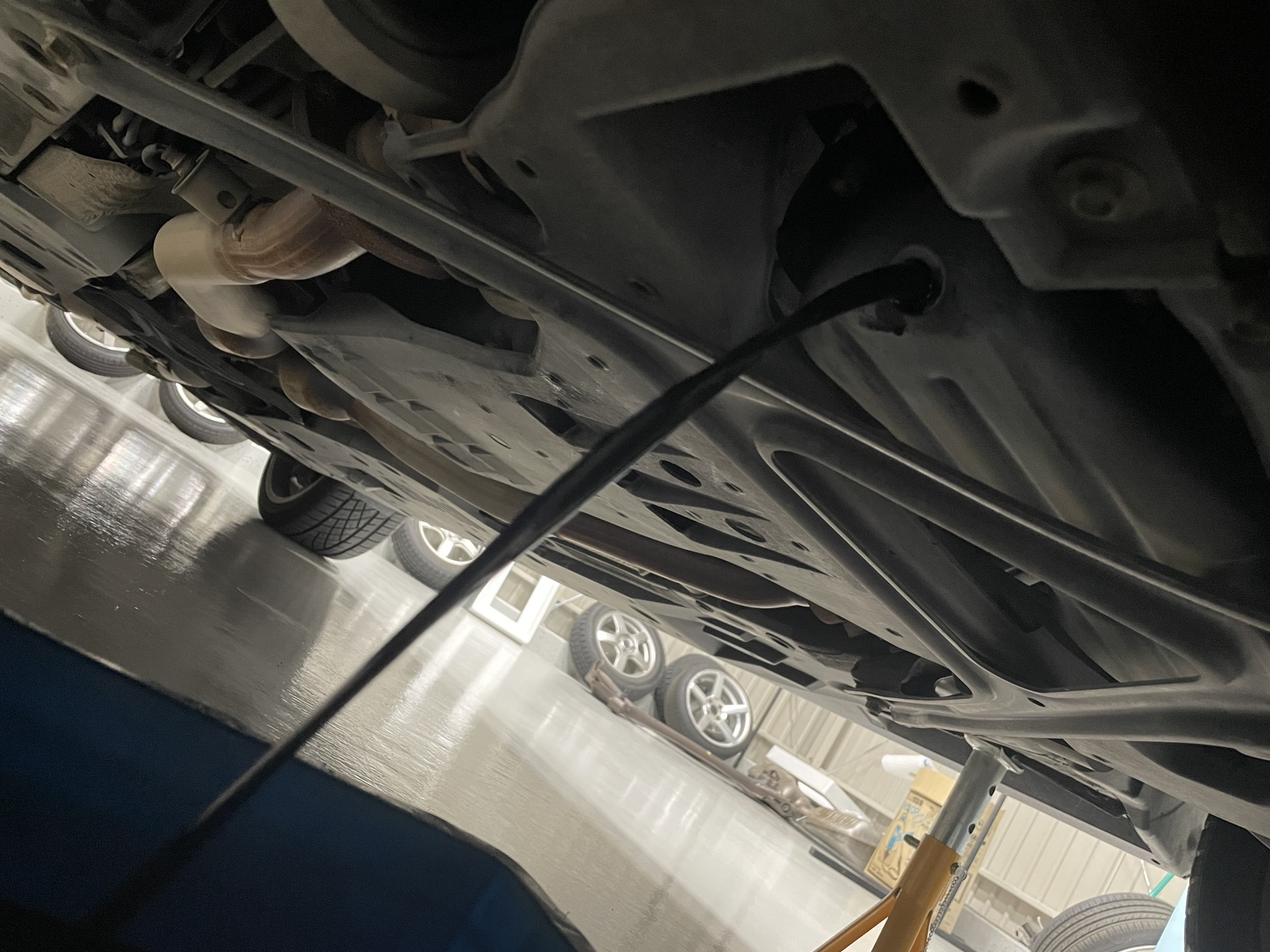 セダンは、オイルドレンがかなり奥側にあるので、純正の車高でもジャッキアップは必須ですね…。コンパクトカークラスなら、スロープに乗せるだけで大概オイル交換が可能ですが。