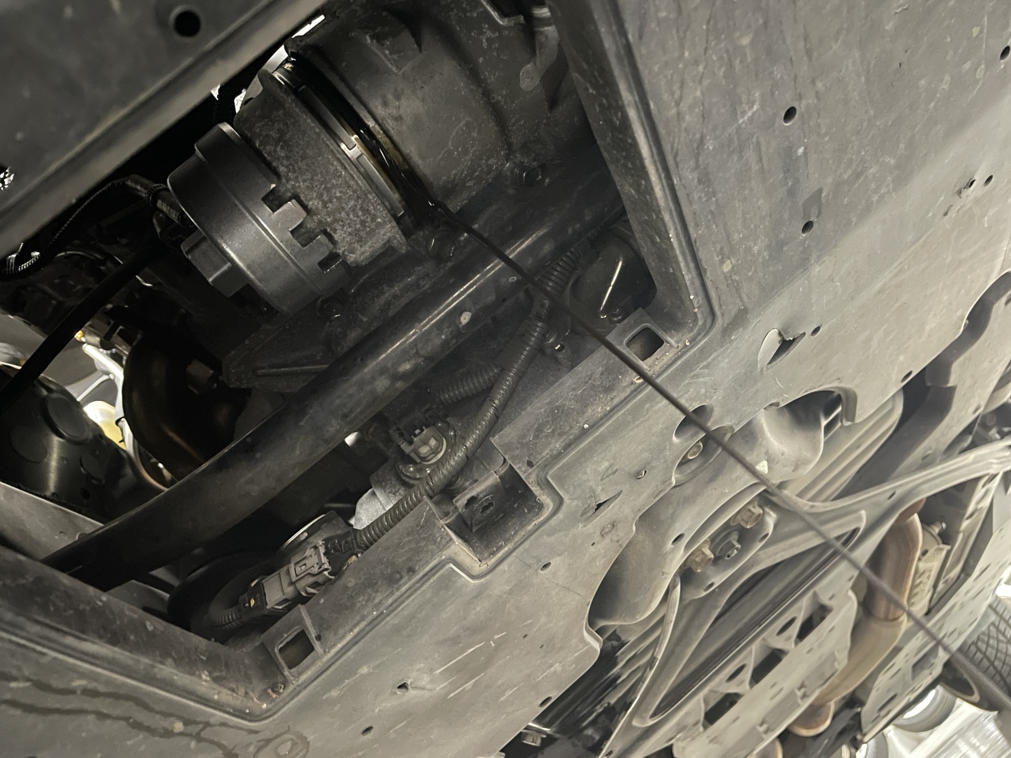 オイルフィルターの交換時には、アンダーカバーを外してサービスホールからアクセスしてやります。10mmのソケットでボルトを3本外してやれば、カバーの取り外しが可能です。