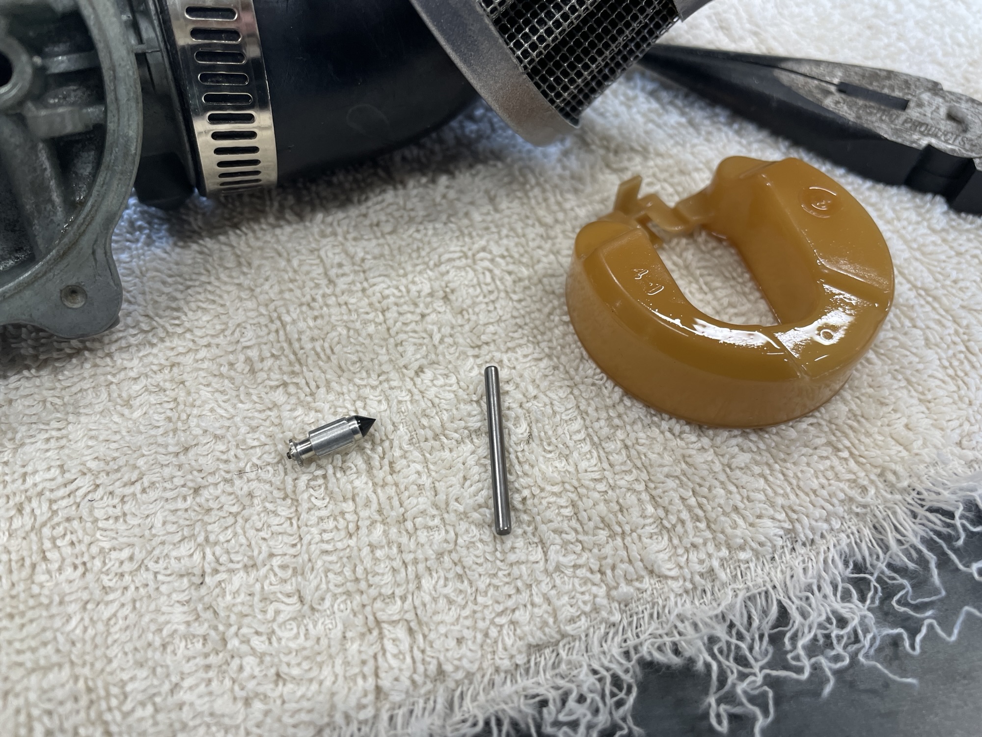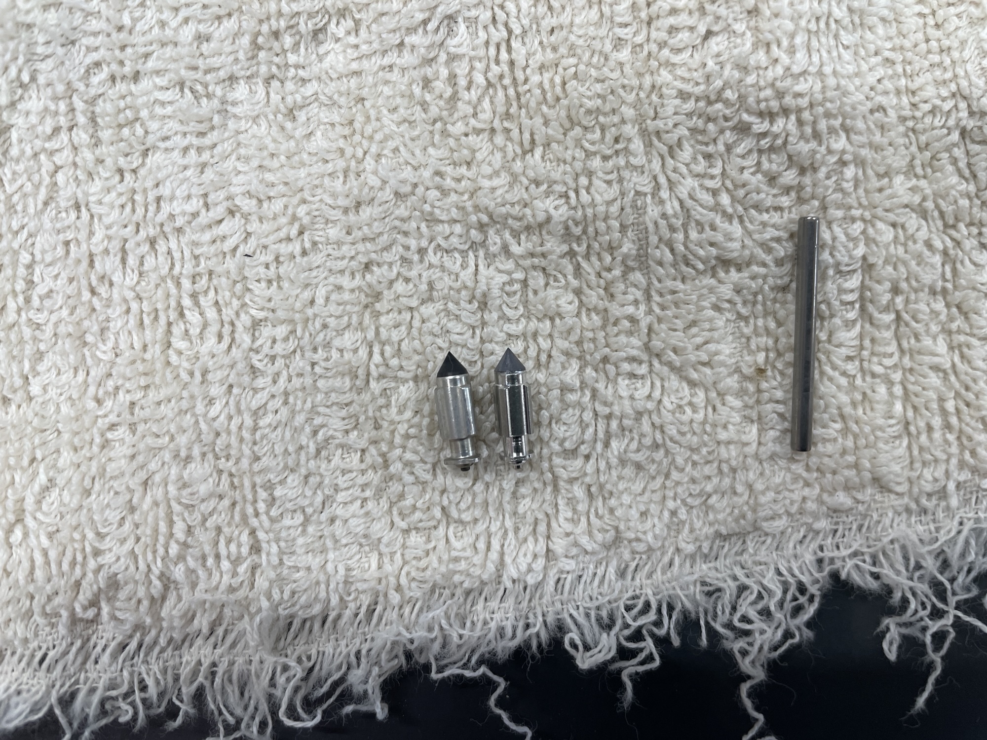 フロートバルブはそこまで高い部品ではないので、真っ先にフロートバルブを交換してしまえば良いかと、個人的には思います。交換方法は、フロートを固定しているフロートピンを抜いて、フロートを外せば交換可能です。