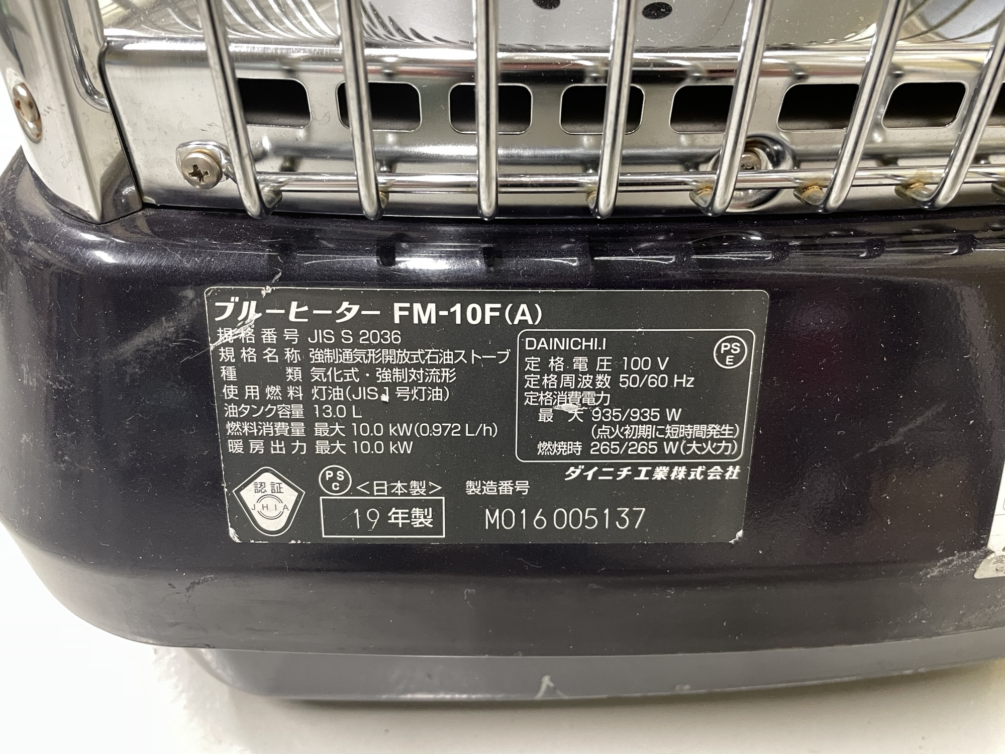 今回ガレージ用に購入したストーブは、業務用として販売されているダイニチ工業株式会社のブルーヒーターです。型式はFM-10F。